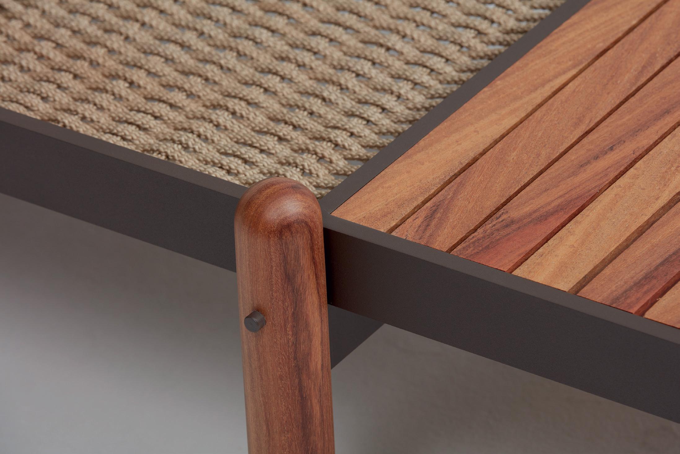 Madeira cumaru, corda náutica e alumínio. Consultar medidas disponíveis.